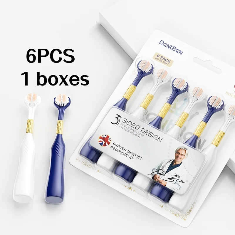 6-Pack of High-End Soft-Bristle Three-Sided Toothbrushes for Adults